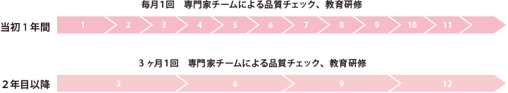 各部門専門チームによる定期的な品質チェック教育研修、管理、人材派遣-